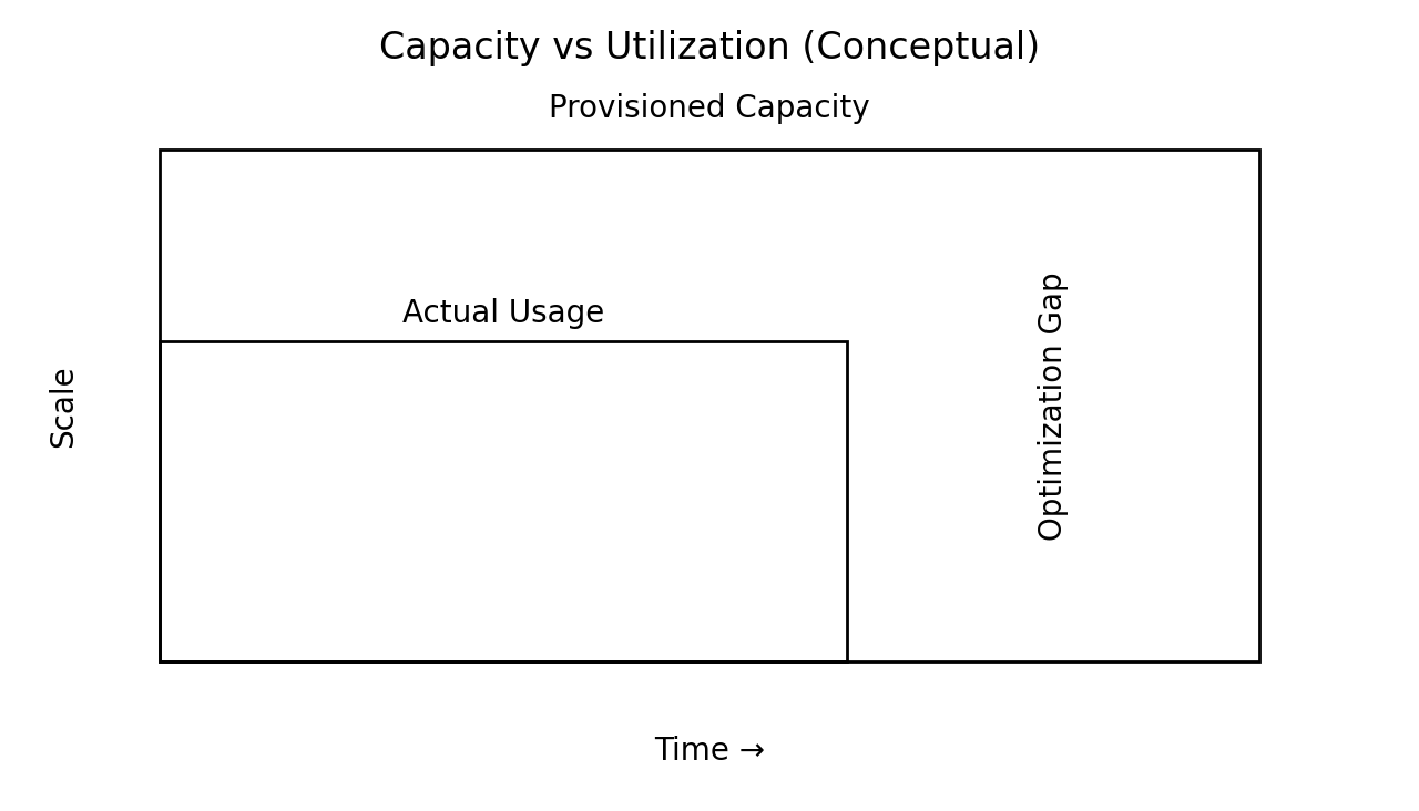 Capacity is paid for before it is used. Safety buffers accumulate over time. Systems are rarely decommissioned as aggressively as they are created. The result is that many organizations slowly drift into a state where they are paying for far more than they actually need.Infrastructure does not behave like most business costs.