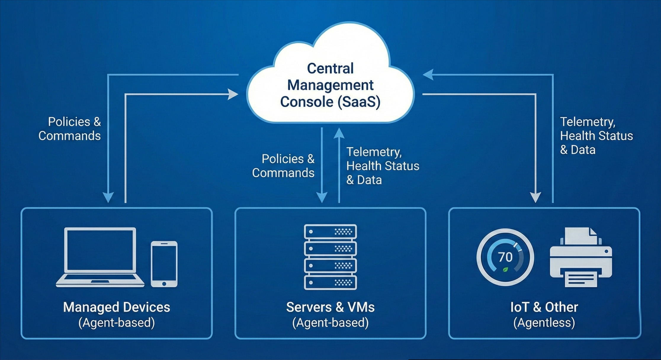 The Central Management Console: This is the single pane of glass for the IT team. Hosted on-premises or in the cloud, this dashboard allows administrators to define security policies, monitor device telemetry, and deploy software across the globe.